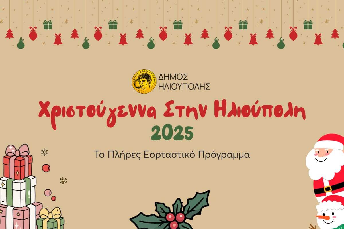 Ένα εορταστικό πρόγραμμα πλούσιο σε δράσεις για μικρούς και μεγάλους δημιούργησε ο Δήμος Ηλιούπολης για την περίοδο των Χριστουγέννων 2025, με πληθώρα από events, προβολές ταινιών και δράσεις για όλες τις ηλικίες.