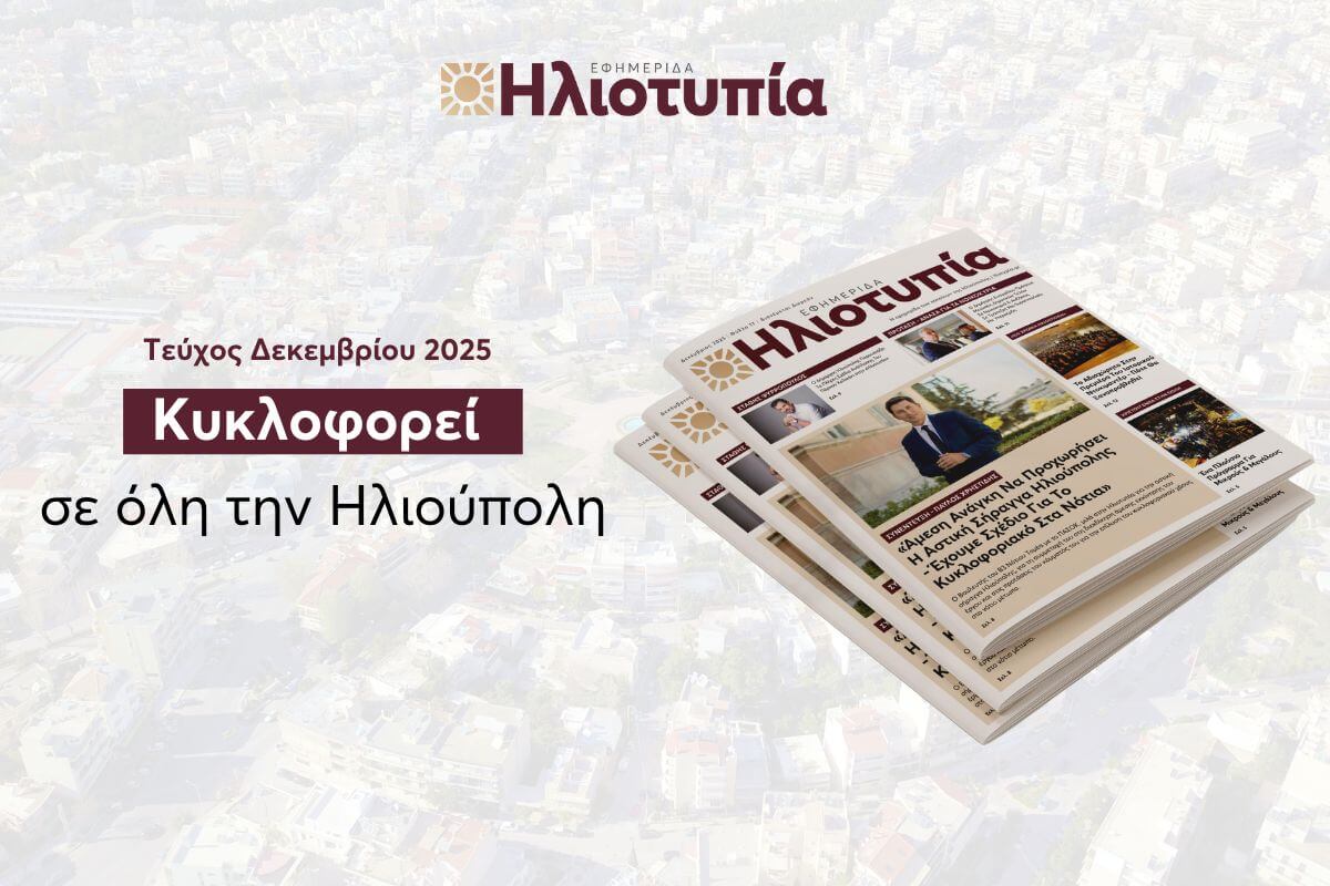 Στα γραμματοκιβώτια των σπιτιών της Ηλιούπολης διανέμεται από σήμερα η εφημερίδα «Ηλιοτυπία», η οποία κυκλοφορεί ήδη απο χθες Κυριακή 21/12 σε 15 σταθερά σημεία δωρεάν διάθεσης σε όλη την Ηλιούπολη.