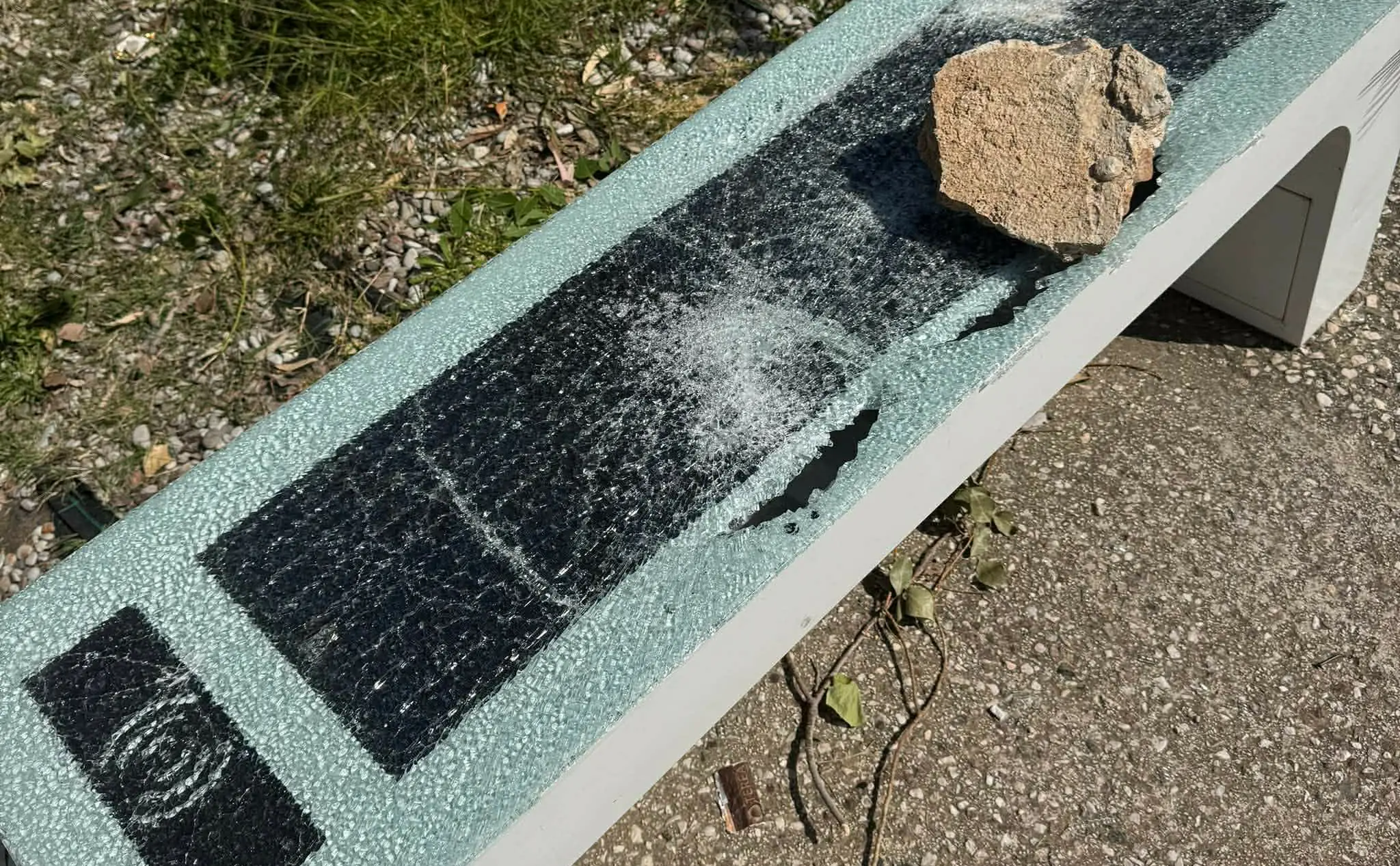 Μετα το απίστευτο περιστατικό βανδαλισμού στον τοίχο του πάρκου Αγιου Νικολάου, σειρά ειχε το ολοκαίνουριο ηλεκτρικό παγκάκι στην περιοχή του πολυκλαδικού σχολείου Ηλιούπολης. Όπως μαρτυρούν οι εικόνες, οι δράστες πέταξαν με βιαιότητα μια βαριά πέτρα επάνω στην επιφάνεια του πάγκου, με αποτέλεσμα να το καστρέψουν ολοσχερώς, ενώ μετά την πράξη τους εξαφανίστηκαν.
